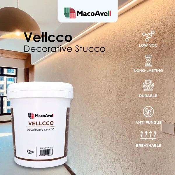 MacoAvell is a Malaysian brand of texture paint supplier and manufacturer, specializing in premium lime-based texture paint, Venetian plaster, and wax finishes for interior and textured walls. MacoAvell is available in a range of stunning colours, featuring a variety of Eco-Friendly Textured Wall effects, finishes, and wall designs that are almost limitless. Here are the main product lines Vellma, Vellplas, Vellcco, Vellwax, and Vellwax Metallic.